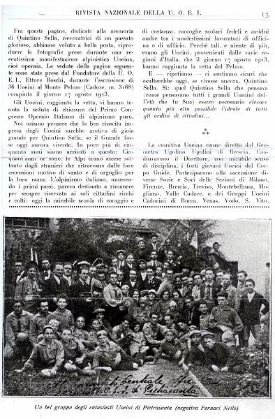 Interno della rivista mensile nazionale ufficiale della UOEI “La Vetta e la Spiaggia” , con foto di Uoeini Pietrasantini in gita