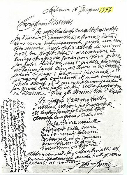 Lettera autografa del Fondatore Ettore Boschi (16 Giugno 1953)