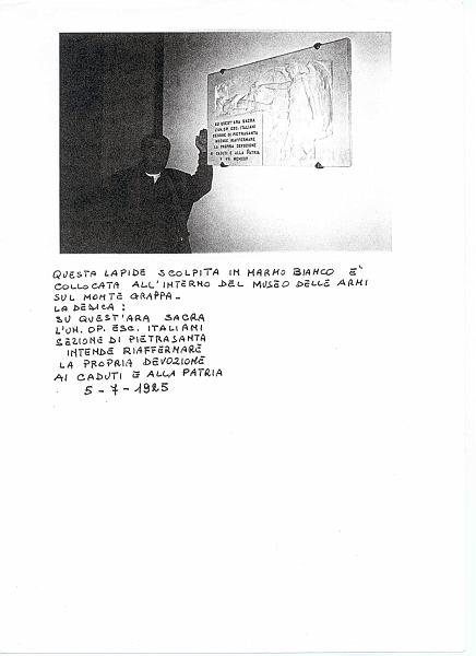 Lapide in marmo, posta dalla sezione di Pietrasanta, sul Monte Grappa al museo delle armi.